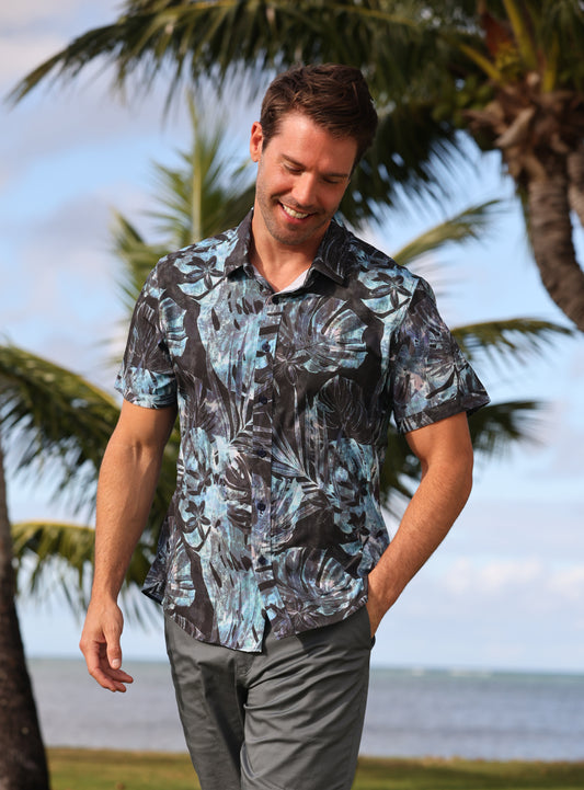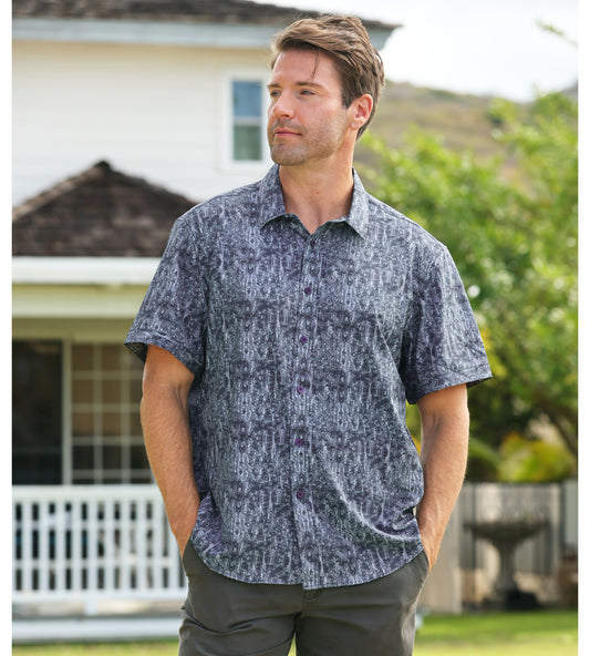 Island Crew Men's Stretch Short Sleeve Aloha Shirt: Midnight Breeze