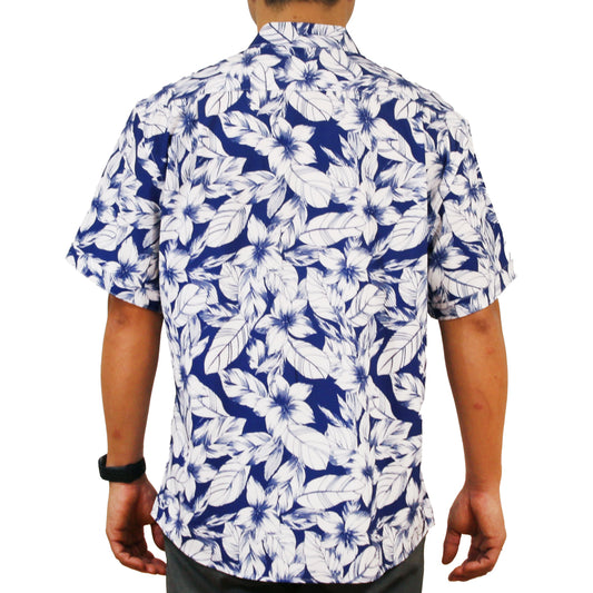 Island Crew Men's Stretch Short Sleeve Aloha Shirt: Midnight Floral, Blue