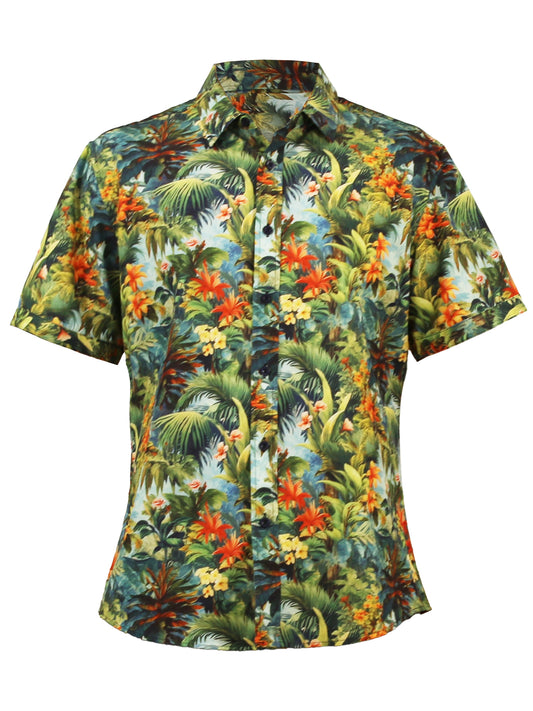 Island Crew Men's Stretch Short Sleeve Aloha Shirt: Jungle Isle